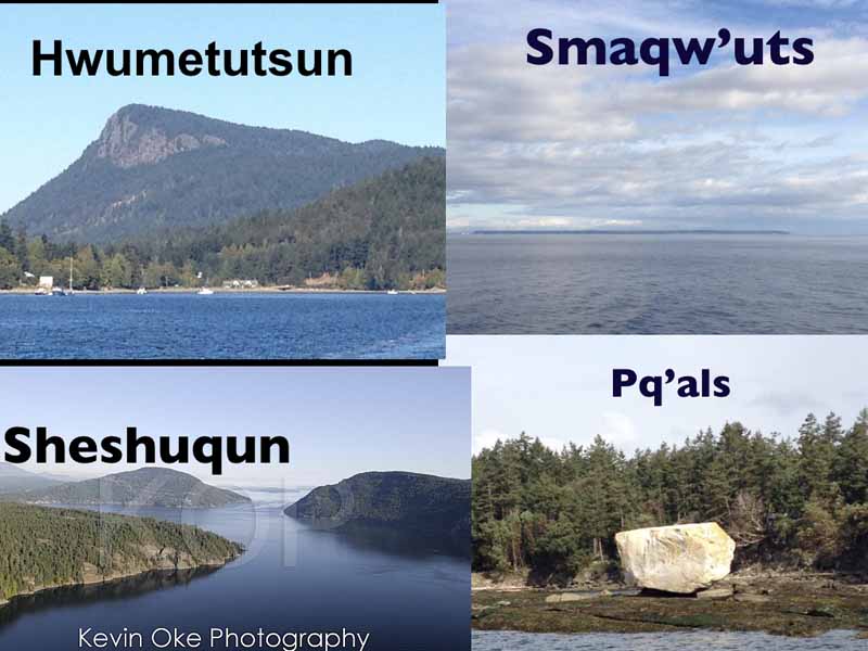 So most of the names I'm going to look at today are in the Hoka Eaton language, because that's the language I'm most familiar with. And I've worked with a lot of come and elders, but I've also worked with a lot of St Jocelyn speaking people too. So I have a good, I think, a balance of of information about these place names. But one thing about the place names on salt spring, whether it's Hoka itam or sinot, it's the same word. They just felt slightly differently pronounced, different. So, and, and of course, each tribe has its own writing system. That's the Joslin writing system.