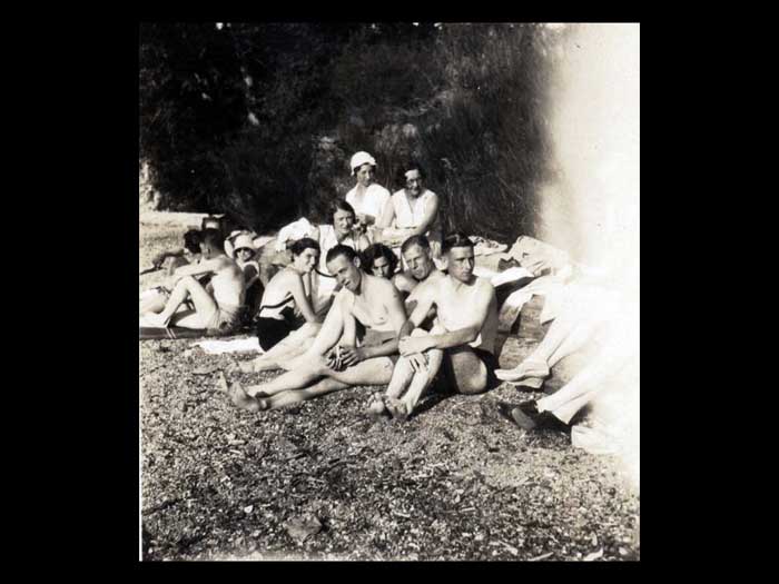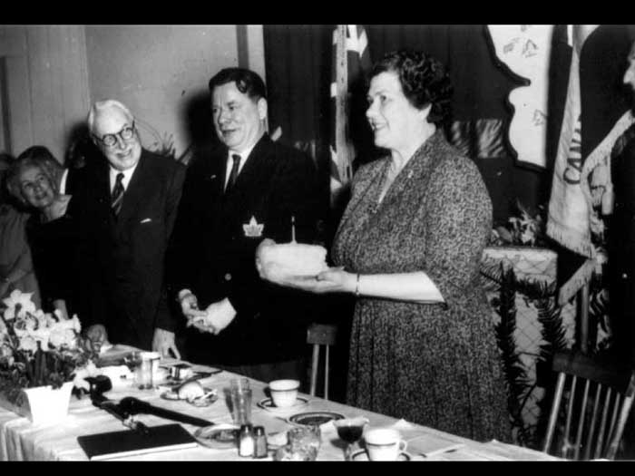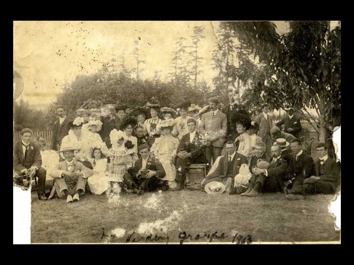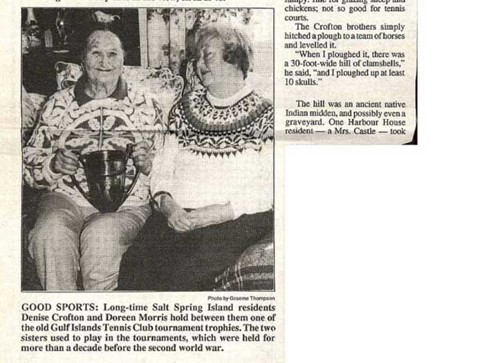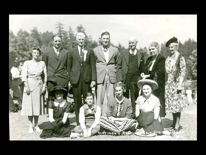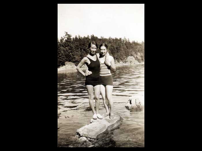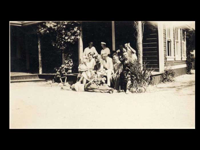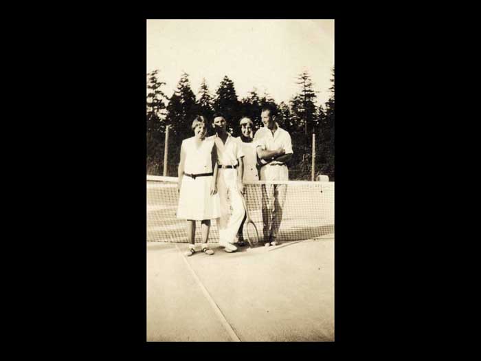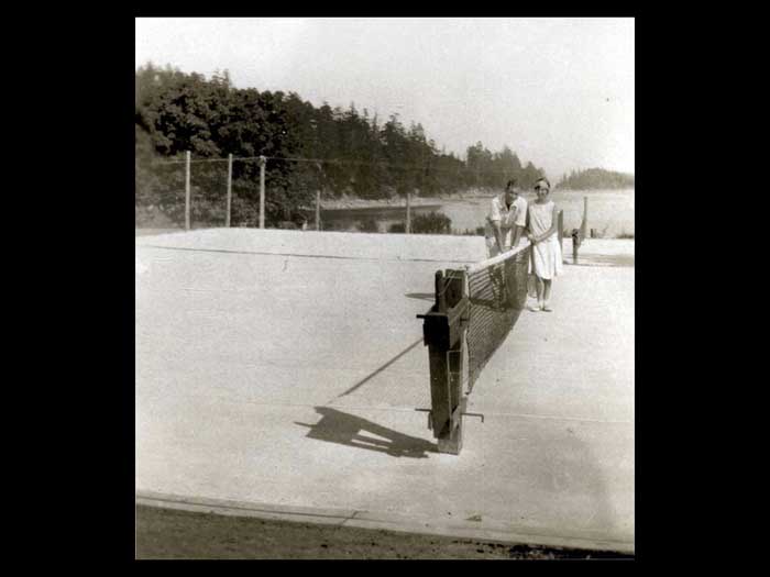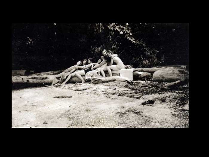 Otherwise you don't have to get up and practice your Jitterbug okay. Oh, yes. Okay. Dollar flowed was Applejack and loganberry. Wine and laughter filled the night. Then the city's brought the international tents. Sorry, sorry, sorry. Okay, then the 30s thought the international tennis tournaments. The harbor HOUSE Play courts were known as amongst the best in Canada. And they were romances going on, said Denise Crofton. Denise is on the left and Doreen is on the right. They're holding on to a tennis championship trophy. But what I'm trying to concentrate on is that there were romances going on. Elegant patrons roam the premises in their tents while looking for partners, not always for tents. They arrived in their yachts and motor launches coming to the harbour house for the swimming, the rowing, the cards, the picnicking, and all the kinds of entertainment that went with every community gathering back then. The scavenger hunts were clearly enormous fun. The scavenger hunts were clearly enormous fun remembered years later, and involve in interaction with the locals so that they got to know each other. There was also entertainment at night, crab races on the billiard tables. Rich music singing. The highlights however, were undoubtedly the Saturday dance. This is the the tennis tournament, the tennis tournament Saturday. Women wore long dresses, men their flannels and blazers and the Hake family of sax and piano playing musicians rode over from Castle Island and played jazz until the early hours of the morning before rowing back home again. This URL tournament dance was really quite famous Denise record, we were lucky that the annual tennis tournament could not compete for the Second World War. The last one was held in 1939. sheer tenacity had gotten through the Depression years. Fred Crofton died in the early 1940s. And as Denise coffin put it, the brothers left the Japanese the men in general were gone to the Second World War. So this is where the sisters need to come to the fore and take over absolutely everything instead of the house that they had been doing before. So Denise chop the wood Did the repairs while building in providing such good continuity in the kitchen and garden to overcome the deprivations of the wartime years of the 40s until there's Cofton returned from the war cabins had replaced the tents. And the fad of tourism now began in earnest. I forgot to say that of course during got married, so she had another whole set of things to look after the 1960s, the very first pioneer reunion Day was held on the 15th of June 19. And 50, a movie maker was hired to come, oh, I should have been having back there all the time. I want us to dwell on that, okay, there's no inner center sitting down. And in the back, and all around her are her family, the seven DS, every single one of them had a deed to the beginning of their name. So at the back there is on the best this day. And then the eldest, the firstborn, and then there's Desmond, who went away to war and came back a colonel. And behind them is Darcy, who was not born until after the war when Fred came back. And then there is Denise and then on the far right, is Donovan who sort of broke away from being a D. Got called Patrick and they were all Irish by to say the roll overs. And then the daughters in the back there. On the left is Denise and on the on the on the messed up. No, no. We're talking right. This one here. Just Diane's on the other side. You think that was Diane? Yes. You're right. I'm not sure that photograph is difficult for me because they all look alike. Have to didn't don't usually do that there is no getting older, and her children getting longer too. They're getting more capable of doing things for themselves, as well as running the harbor House Hotel. So Denise was the one that didn't get married. And she stayed on the hotel full time for that reason. Okay, now we can move on to where I have got the very first time 1950s The very first pioneer union Day was held on the 15th of June 1950. A movie maker