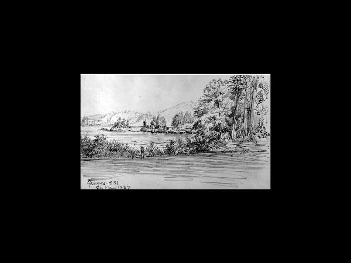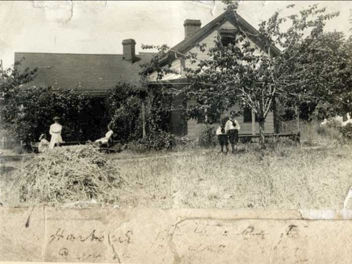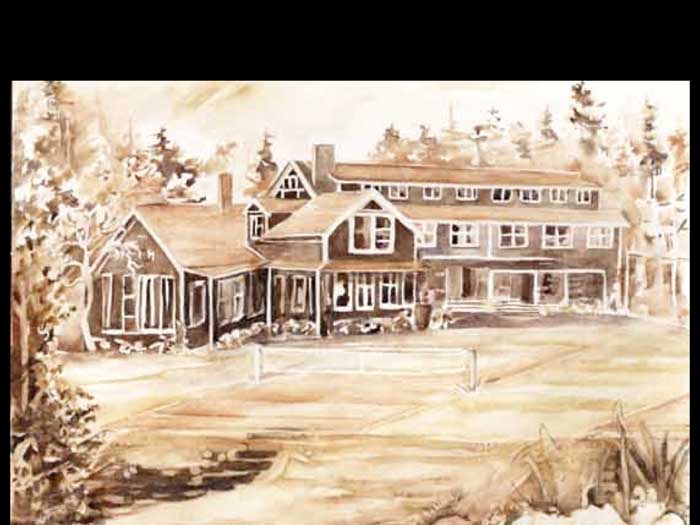 Good afternoon and welcome. This is a summary of a long and varied history of the harbor House Hotel. This is Reverend Wilson sketch of his daughter known as home when she met Fred Croft in 19 102. I will be reading quotes from time to time from my sources, often reporters, sometimes historians include me. I will quote first a reporter Helen Davidson, within walking distance of Ganges sprawling in a country setting overlooking the ocean farmhouse called harbor house which became a guest house a hotel by the same name with a long creeper covered veranda wrapping around it, which will feature in the show again and again. Have a good look at it. It's at the end of