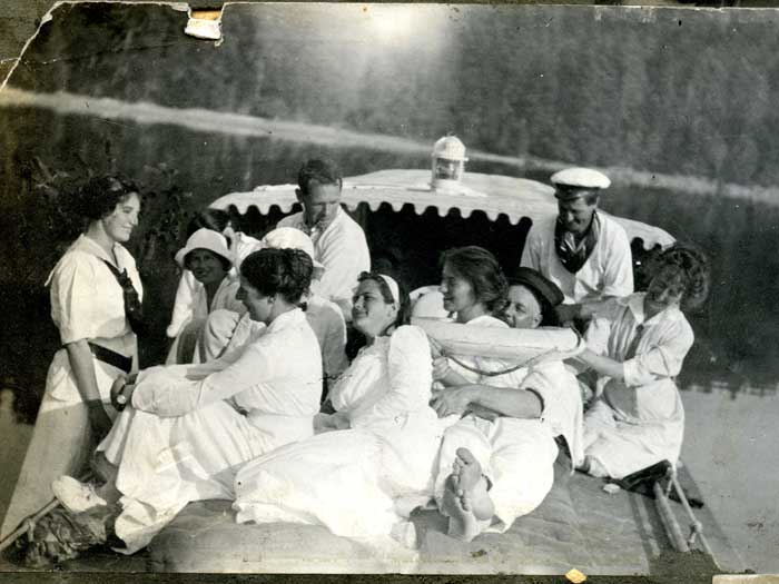 The local community also provided entertainment for the guests I've got here muddled pics in my notes. I will now look at the pictures and speak of my notes. So these would Garden Parties and they're also church fates which were fundraising. And they were reunion. And there were phasing. This is bathing. Wonderful diary entry. Oh, it looks pretty good up on screen. Yes, good. Bye barrel Scott. Scott was known as nice. She had many existence she was so nice that wrote illustrated journals, which again are in the archives, and a total wrong to read all the way through. She's a wonderful writer of what her family is up to and what she thinks. And, and one of the things that are not in this show is my favorite picture ever that the federal Drew, which is saying that it just isn't an ending for something she was writing about. Aren't Nona brought a chicken and the picture that she drew was absolutely definitely no nothing tall and skinny and everything upright. And she's being marched along by a chicken up her head because she has got the chicken on a lead and the leaves attached to one leg of the chicken and it's totally heading off and she's having you see this is why I'm reading from notes. If I start telling you all the stories, you'll be here to my bed. I will stick my notes about the swimming This is a drawing by notice young nice barrel Scott who's amusingly illustrated diaries are in the archives and on the website. The local community also provided entertainment for the guests. I should just see. Oh no, we've got the car. Still. This isn't part of my mother's car outings. One of the guests in the hotel, who ended up staying year round had a car and he helped the hotel out by taking other guests up for rides in the vehicle. That was an early one and after that's just any Island who had a car in the island or who had a boat and any Island ever had bicycles. They would just come collect guests from the other house and take them out. So the people of salt books it might be another one. Yes there's camping as well. The camping not only overnight at the hop house but going up for an adventure camping and picnics now this is back and in its previous age. No No absolutely lived for picnics. You can see this there are so many photographs of a picnic and she's the one in the center there. Her hair is slightly more disheveled than it would be if she wasn't picnicking. Absolutely love to go out. Eating food on the ground outside but with table costs and all that closing their lesson everything is just stupid. In a way of life that ought to be revived, really? So she did this with the guests. There were lots of picnics for the guests. Possibly, because that kitchen was the farmhouse kitchen. Tiny little place. And the dining room was the farms, the farm families dining room at the beginning. So where do you feed lots and lots of guests per show hotels getting so popular? You can pick next up we needed to spread an AMI you've got specialty dining. Okay, so let me see what else we've got. Oh, yes and boating. Now you can see how much fun notice having there and how disheveled her hair is because she's on the far right. Okay. I can tell you that her father Reverend Wilson would have been shocked to the core at this goings on behind his back. And they they will write lots and lots of little notes and things that show you that Reverend Wilson kept a very very strict household and brought them up properly. That they were hiding the facts from him that they were islanders to the core they're living like this instead. Okay. If you've got any more choices here No, no loving camping and loving giving others that camping life well into all the the people of Salt Spring. Yes, the people of Salt Spring used to have the house for celebrations, their own celebrations. For reunions. This is the Rachael family. And for annual the annual pioneer. Visitors who came by sailing boat or yacht moored in front of the harbor house, the head of the harbor by 1918, the CPR passenger steamships called in on Ganges concealing that and there is the spotlight newspapers handy map showing you the ferry routes go to Ganges and car ferry service to Gambia began in 1929 with the side Peck is a partly Saltspring Island business ah before that, just listening to hear what crop what the how the house effected have on the site. Yes, I do know that the top of the car selling during Crafton remembered when the side pet excursion trips came in. They used to call in at Ganges once a week on Wednesdays, and you'd get a lot of people in, they rushed in and what they've done is in half an hour, and Denise coughed and added and then on Sundays Princess Patricia used to come in about 1230 And they all used to walk over for lunch we nearly went crazy trying to serve our own guests and these extras. Billy in going crazy in the kitchen and the rest of them in serving and and washing up the dishes and all the rest of it went into the hopper house provided food for large gatherings and meetings. Oh sorry. This is the harbor house provided food for large gatherings and meetings there is built in yet all the meals were cooked for those first 50 years in the farmhouse kitchen. I had to ask again and again and Denise got fed up with telling me but to me it's astonishing. I know how many turkeys were cooked for Christmas dinner for the old Saltspring island in that kitchen. Crazy. Actually chickens most of the time they couldn't afford this. Couldn't afford the turkeys. Soft bananas couldn't as well as the hotel. I'm deviating from my script. The harbor has provided food Yes. That's the famous Billy Ian, who came as a youngster in 1926 and cooked the harbor house for 50 years. There was no electricity to be had until 1937. The coffins relied in part on a generator operated by the little boys, since Nona didn't have anything to do with such a thing. The laundry was done in a shed by a Japanese family, the mercados who lived at Harbor house, acid Billy an