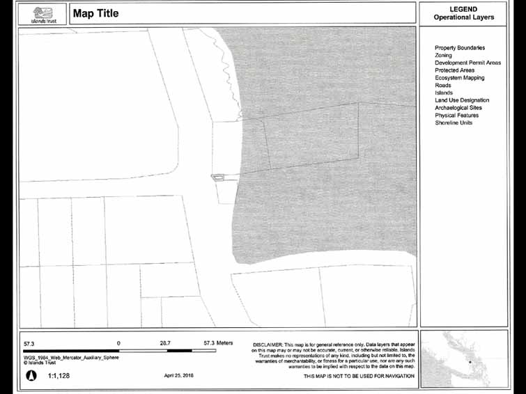 Now for my thesis that Ganges would not exist in its present form, if we had the current regulations in effect at that time. This is an aerial photo taken around the 1930, or there abouts. One of the first regulations that would have been, I wouldn't say a hindrance but, if it had been an effect then, Ganges wouldn't exist in its present form because of the Agricultural Land Reserve. For one thing. We can see the orchard there at that time by Frank Scott. A lot of this land is still, well is now, zoned agricultural, not only zoned agricultural, but is in the Agricultural Land Reserve. This is swamp area here. Next one is agricultural but it's something that probably wouldn't be allowed to be filled in nowadays. Another reason that Ganges wouldn't exist in its present form are archaeological reasons. Skeletons have been dug up here, and here, and you're all familiar with Grace Islet probably. So, for those reasons, they probably wouldn't be places that would have been dug up for excavation for creating basements and foundations and whatnot. And similarly for areas that were filled, they probably wouldn't have been allowed. So those are three reasons why Ganges would not exist in its present form if the present regulations had been in effect back then. Don't ask me what form it would take, guess it would be up the hill probably, over here. But keep in mind that in those days, it was water based. You went where the wharves were, and you developed around the world, you didn't go inland because roads. I could go into a lot of the things orally that happened in the development of Ganges. So, we'll go through a few aerial photographs showing what has happened. That's what you would have seen, that's oh, I guess around 1934, or thereabouts. Just an isthmus going out to Mouat's store. I guess they'll be geologists in the crowd, that'd be called a tombolo rather than an isthmus. You see these buildings; they're built on piles. And development took place with fill going in. You can see that this area has been filled in where the firehall is now. And there were planter boxes along there. This is Hereford Avenue. Here the fire hall has been built on that fill. And an area where Gasoline, I'm sorry Ganges alley is now, that's been filled in (unintelligible). And here, in preparation for the centennial year, 1867, the Centennial Park, this here. That's the park over there (unintelligible). And there's more to come, here are the old gas tanks. (unintelligible) tanks. Still water in here. And now the filling has started in 18, I'm sorry 1970ish. Tom Toynbee can talk a lot, more, better than I can, and I won't go into the recent developments over the last 50 years.