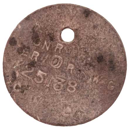 It is a Canadian Military Tag, GNR which is the acronym for his rank which was Gunner, last name Prior o and possible forename initials of W. B. I say that as my fathers serial no. started with K as well and was followed by 5 numbers. I referenced the serial numbers issued in WW1 by looking my grandfathers serial number which consisted of 6 numbers only suggesting this serial number may have been issued in WW2. Diana Farrell |