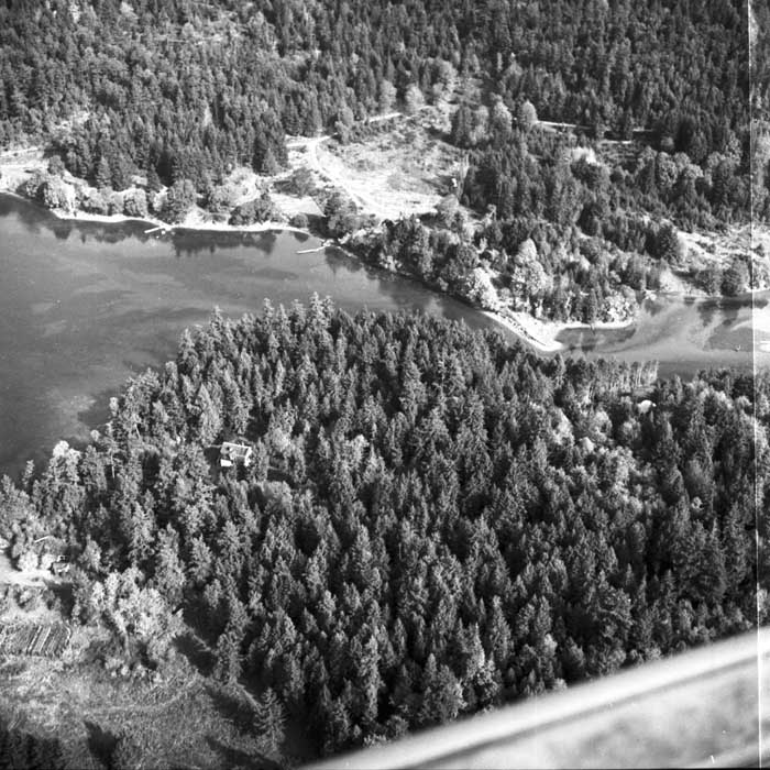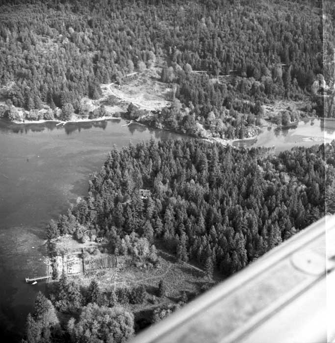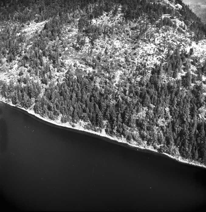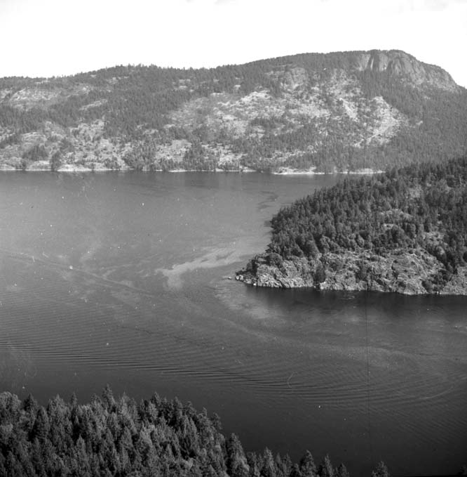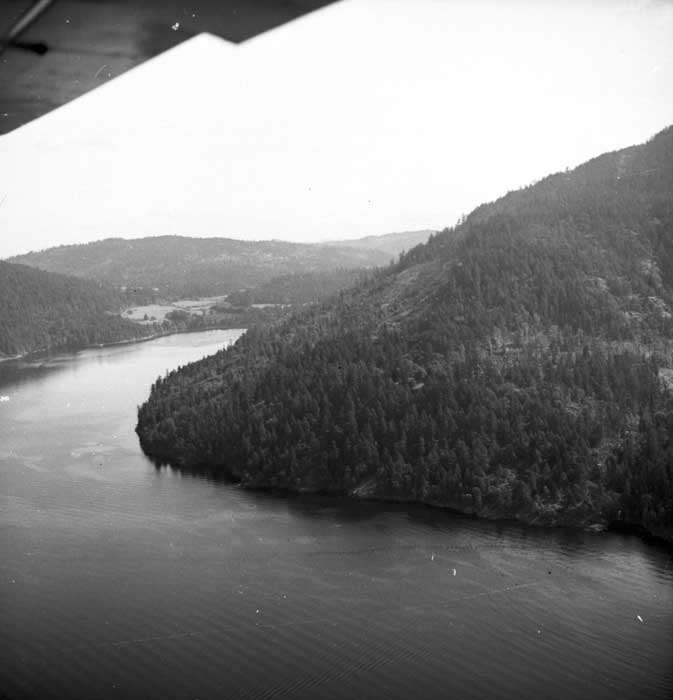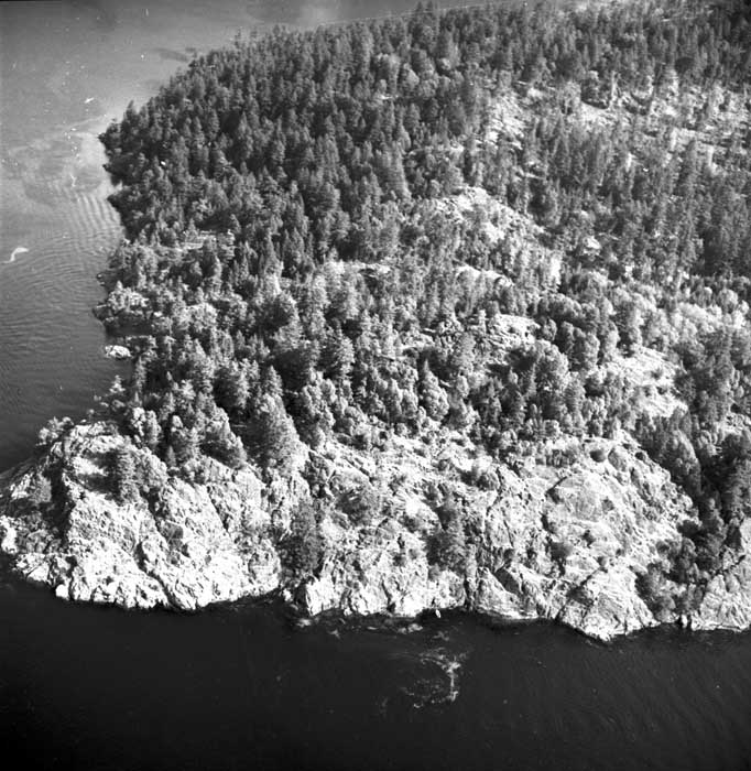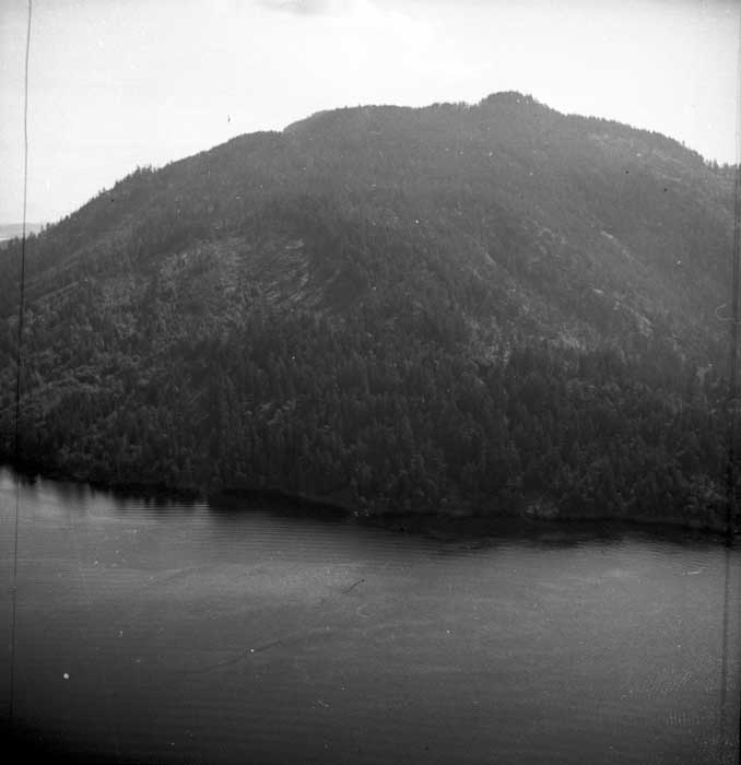 Bold Bluff at entrance to Burgoyne Bay from Sansum Narrows (Vancouver Island bottom left), Mount Maxwell top right