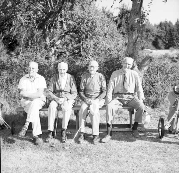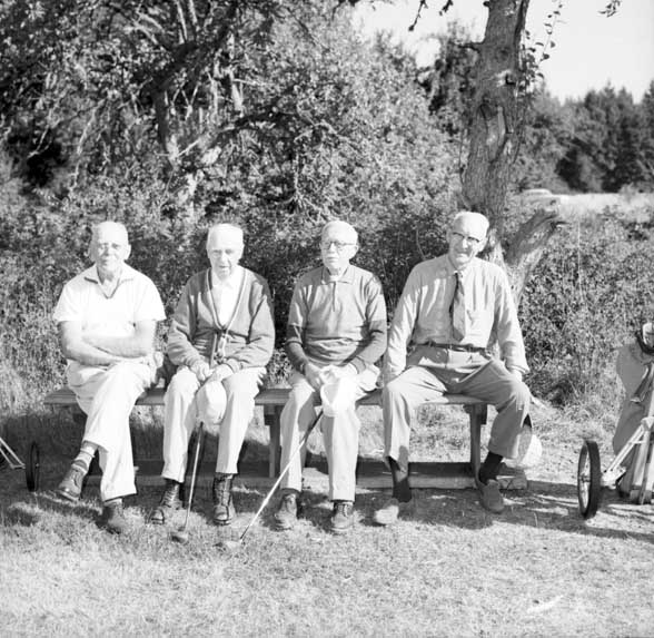 The golfing foursome of Dr. W.T. Lockhart, Mr. Sam Adams, Mr, W.M. Mouat and Mr. Bill Wells is probably the oldest active golf Foursome in Canada. Their combined ages total 327 years.