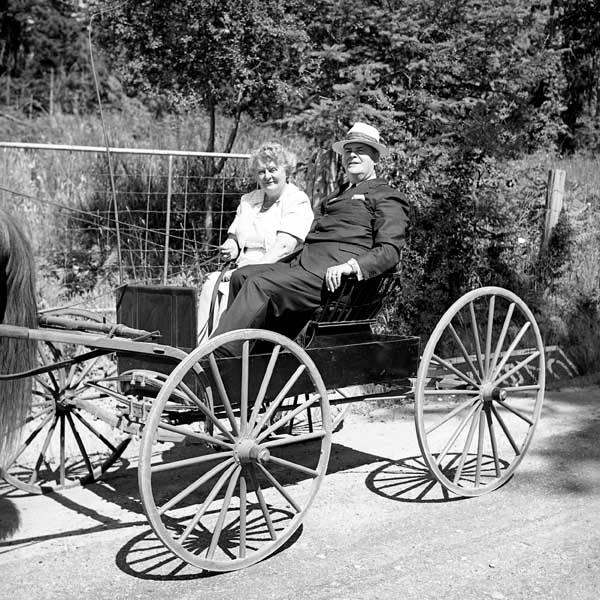 Premier W.A.C.Bennett was taken for a ride last Saturday afternoon. Mr. Bennett enjoyed a drive with Mrs. Warren Hastings in her horse and buggy making an old-fashioned but pleasant picture as they drove down the wooded road, along the Upper Ganges Road. Mrs. Hastings reported the Premier had enjoyed his drive and that he was even more convinced of the importance of keeping our island charm as much as possible as it is at present.