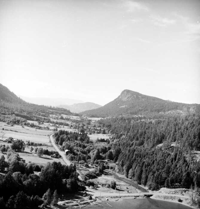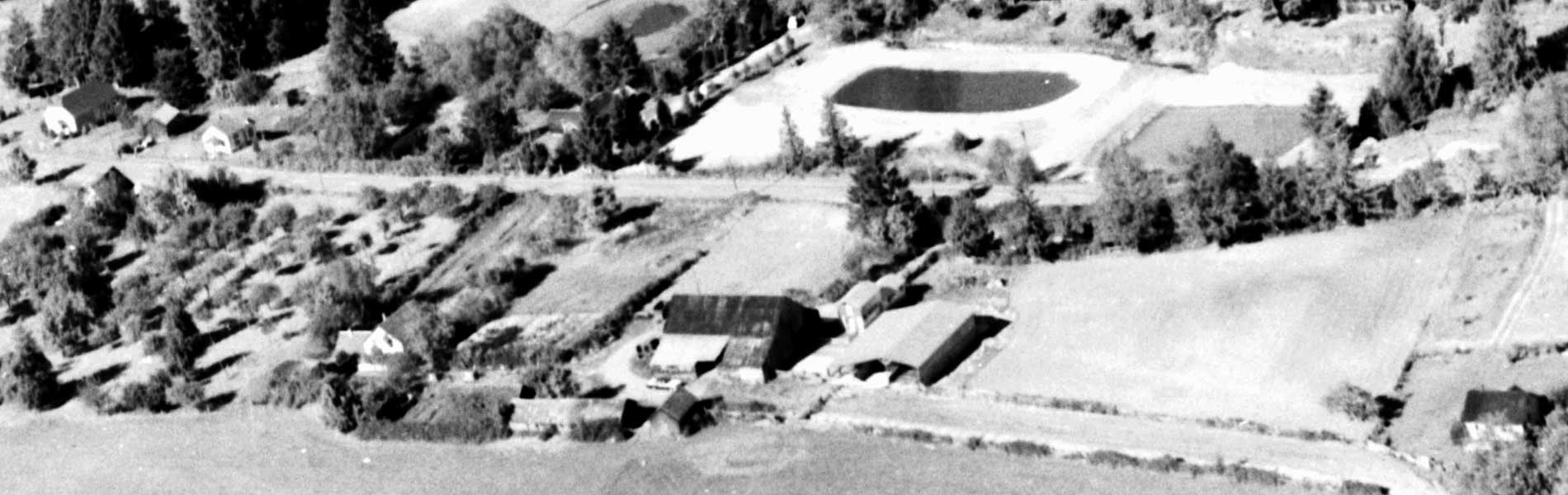 Further to your identifying...the 2 fields on the left before you go up Lees Hill with the grove of trees, a barn and house were owned by Ted and Daisy Gear at the time of this photo. The barn was built by the Furness brothers and the house was built by my parents in 1960. This was part of 160 acres which today includes both sides of Furness Rd and was Valley View Ranch....up to 10,000 turkeys were raised a year on this property with Hereford cattle, Suffolk Sheep and grains in the lower fields.