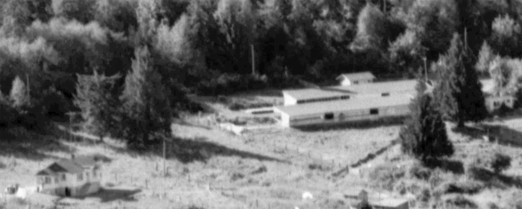 back from the road, the Lee barn and further left, the Ed Lee House, later home of Maggie Lee, widow of Hutsy Ed.