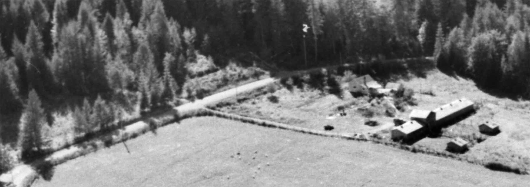 left of Newcombe’s house is the barn, which has since fallen down.
