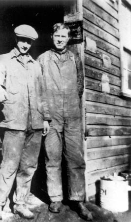 Bill Page and Cyril Wagg at Mouat's Feed Shed (c1920) (Cyril Wagg)