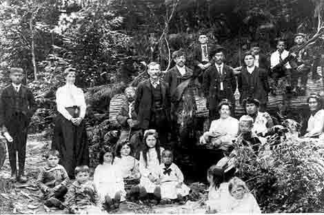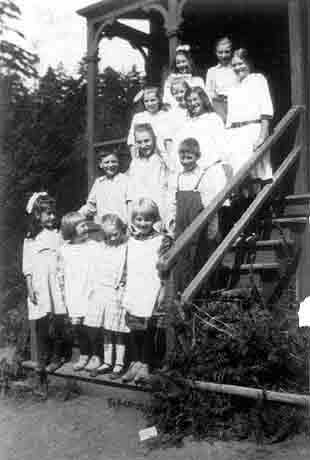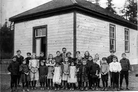 The photograph was taken at the end of that first school year in 1905, on the occasion of the awarding of a Roll of Honour to one of her Hawaiian community students, Willie Palua (Kanaka people, the Hawaiians called themselves). Willie's father Johnny Palua (also spelled Pallua) was one of the school's three Trustees. The photograph was submitted to the 1978 book Snapshots of Early Saltspring by another Isabella Point School Trustee, Edward Lumley, whose children also attended the school. (This book is still in print - the photo is on page 65)