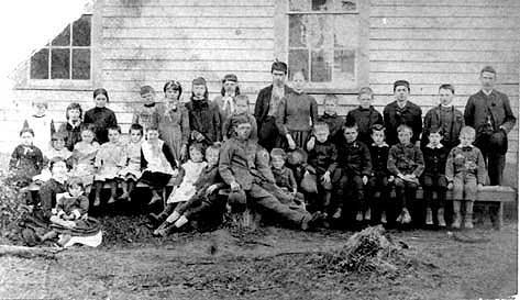 Teacher Mr. Lavigne. Original class at Beaver Point School Seated in front: ? , Alexander McLennan, ? , Ewen McLennan