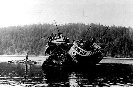 Resting on Atkin’s Reef, east of Walker’s Hook. They were ‘in bridle’ while towing a boom of logs.