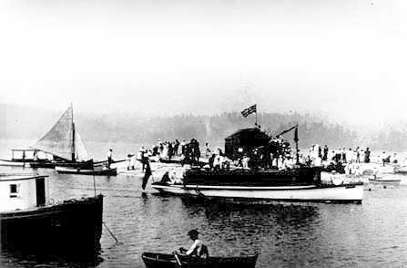 The new docks decked out for the occasion. Cy Peck carried liberal amounts of bunting.