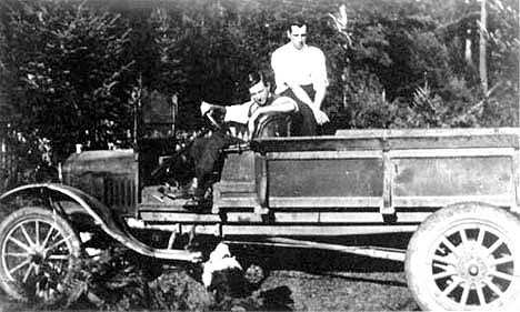 Off for a ride in Patterson’s first truck, with Wm D Patterson driving. Ivy and Grace sisters of Emma.