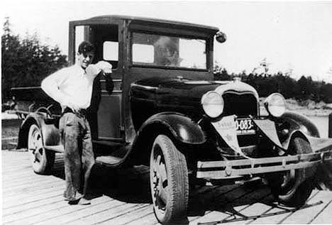 His carriage and horse replaced by Salt Spring Island’s first automobile. Mr Bullock in the driver’s seat. Willie Palmer is getting in behind.