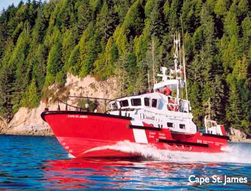 is still in operation. They're not, that's the SRM six. They're not using that paper machine anymore. The machine they're using now is powered by that's powered by an aircraft engine. The new machines are powered by I think they've got VA caps in them. Twin propellers in nozzles which are driven by belt driven from the AF two V eight caps, and the forward to V eight cats run. Big down fans that push air under the vehicle to provide the cushion and the escaping air you'll notice on the new vehicle that has these sort of they look like big stove pipe nozzles with 90 degree elbows and they are up at the bow. The operator can use them as bow thrusters and move his bow port and starboard with the main props providing the thrashed and they'll get the new one is open like a sea truck route down the bow. You can drive you to grab a fire engine on it if you want to do and away it would go up to 60 knots. So it's it's quite a an amazing vehicle really. If you've ever get a chance to go on a hovercraft, you can't help but be amazed with how, where it can go and how it can just cross over. Land see snow ice doesn't matter. One of the things the spin off that the Coast Guard found about the icebreakers This is more back in the East Coast. They found that a hovercraft traveling over ice will break rather thick ice they can break ice two feet thick. If they travel at a certain speed. The hovercraft creates a wave just like all vessels do. And if they travel at the speed, not too fast, so they make making a good following see, it will make a wave under the ice and of course the ice is non flexible and that will actually crack the ice. They can crack ice about two feet thick with a with a hovercraft, quite surprisingly. So with the 40 fours and the new the new station up in bull Harbor, which is a small place small island on hope island boat 23 nautical miles north of Port Hardy come out from Port Hardy hanging left in your place by Glee this channel run up to the top end ugliness channel and you'll come to both harbor where there was a Coast Guard Radio Station and the 44 foot lifeboat. Back to the 40 shore. The 44 foot lifeboat was stationed there and covered that sort of North end for the fishing fleet to the fish camps. That station has now closed down the with the advent of the new 47 they closed the bull harbor and put the lifeboat in in Port Hardy. The Kate caution is in Port Hardy. The new 47 If we could just go to the 47 here while we're on his lifeboat similar to what the cape Cooper's downtown it is 47 feet long. It's a US Coast Guard designed vessel but and the whole and the vessel itself is is pretty much identical to the US 47 You'd have no trouble identifying the difference. Ours are the two vessels. Ours is painted theirs is non painted all aluminum. But the way we set out our vessels in Canada is quite different than the than the US boats because the US Coast Guard has such a huge fleet to fall back on in Canada. Our smaller boats are very quick. They're like Cadillacs compared to the American votes, which are like they're like votes, you know, in the States, a 47 would be assigned to a station and it would be like a bar vote and just do immediately in front of that station. And that's the area you'd go in Canada. This is this boat actually patrols a much larger area. Myself, I've been on that particular boat. I've been 100 miles offshore on search and rescue calls which you would never have the US Coast Guard would never send the 40 sevens out there. Matter of fact, the one the call when I was out there was a involved a collision between the US tuna boat and the Canadian tuna boat. The bridge got into fish and everybody was busy fishing. Nobody was watching where they were going and they ran into each other poked a hole in the bow of the Canadian boat just below the waterline and he was taken on some water so they put in a call and we got going. We could do about 27 knots of this thing. So it didn't take us too much time to go there. Three and a half, three a little over three hours and we were honest He got there about 11 o'clock at night and it was not blowing too bad and it was a bit wet, raining and whatnot, visibility wasn't real good. And just as we arrived, or actually, about five minutes before we arrived, the US Coast Guard showed up with one of their big offshore cutters, which is like a destroyer that's about 280 feet long or something that 300 guys on board or whatever. So I was talking to the US ship, and he said, well see where I'm saying he was gonna stand down and take off and I asked him if he had just gone by for a bit until we check this out. Because I said his he had a lot more his capabilities were much better than mine, if we needed if we needed pumps or anything to to do emergency repairs on this vessel prior to they hadn't heading in with him. So he said, Well, what type of vessel Are you and I said, order type 47. And that was his pregnant silence. And then he said die, you got enough fuel to get home. So anyway, we didn't have enough fuel. And these things are pretty hard on the juice when you're making speed. But if you when you slow them down, they they'll they, they're pretty late on it. So on the trip home, we we ended up just escorting this guy, the fisherman had been hadn't been sitting on his hands while we were there, or before we got there, he had been busy transferring fuel load and his catch. So he was raising the damage part of the vessel as shallow as possible. You'd rigged the collision mat to stop the ingress of water. And so he was able to proceed slowly ahead, and we just stayed with him all night, till we got off of Cape bill, just out of bark and sound. And the Banfield boat came out and then picked up the escort, they still had their 44. In those days, they didn't have their 47 yet. And then they escorted him on to Port Alberni, where the ship was hauled and made his repairs, we went on home. But that was the furthest out that I had ever gon