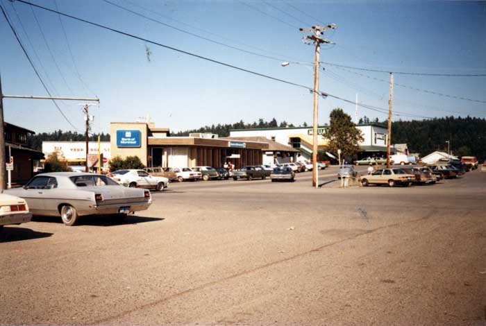 View north from the Valcourt Center. Road to Hospital is on the right. Start of what is now the Country Grocer but at the time was just being developed before it became the K & R.