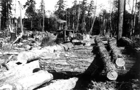 Cordwood stacked at Beaver Point awaiting shipment. the wood is used to fuel boilers generating steam for heat and power.